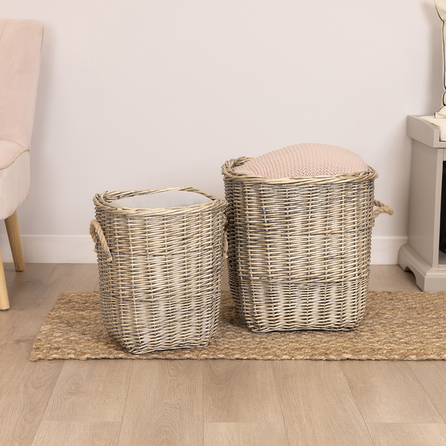 Discover a beautiful blend of practicality and timeless design with our Snug Lime Set of Two Fabric Lined Baskets, meticulously handwoven using high-quality willow wicker for lasting durability. This charming set of two baskets brings a warm, rustic aesthetic to your living spaces while providing a functional storage solution for blankets, throws, children’s toys, and various household accessories. The baskets are adorned with durable rope handles for easy carrying and repositioning, allowing you to move them around your home as your needs change.